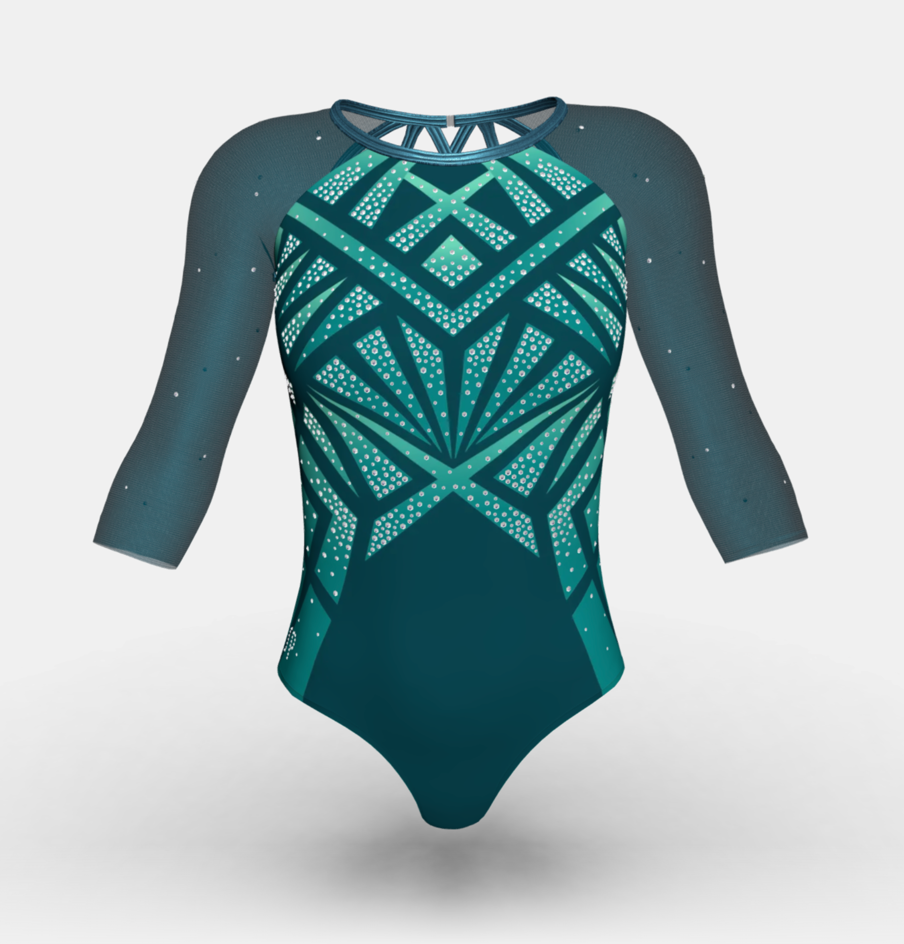 Change the fabrics, colours and crystals of this leotard using StudioSP, our 3D product designer.