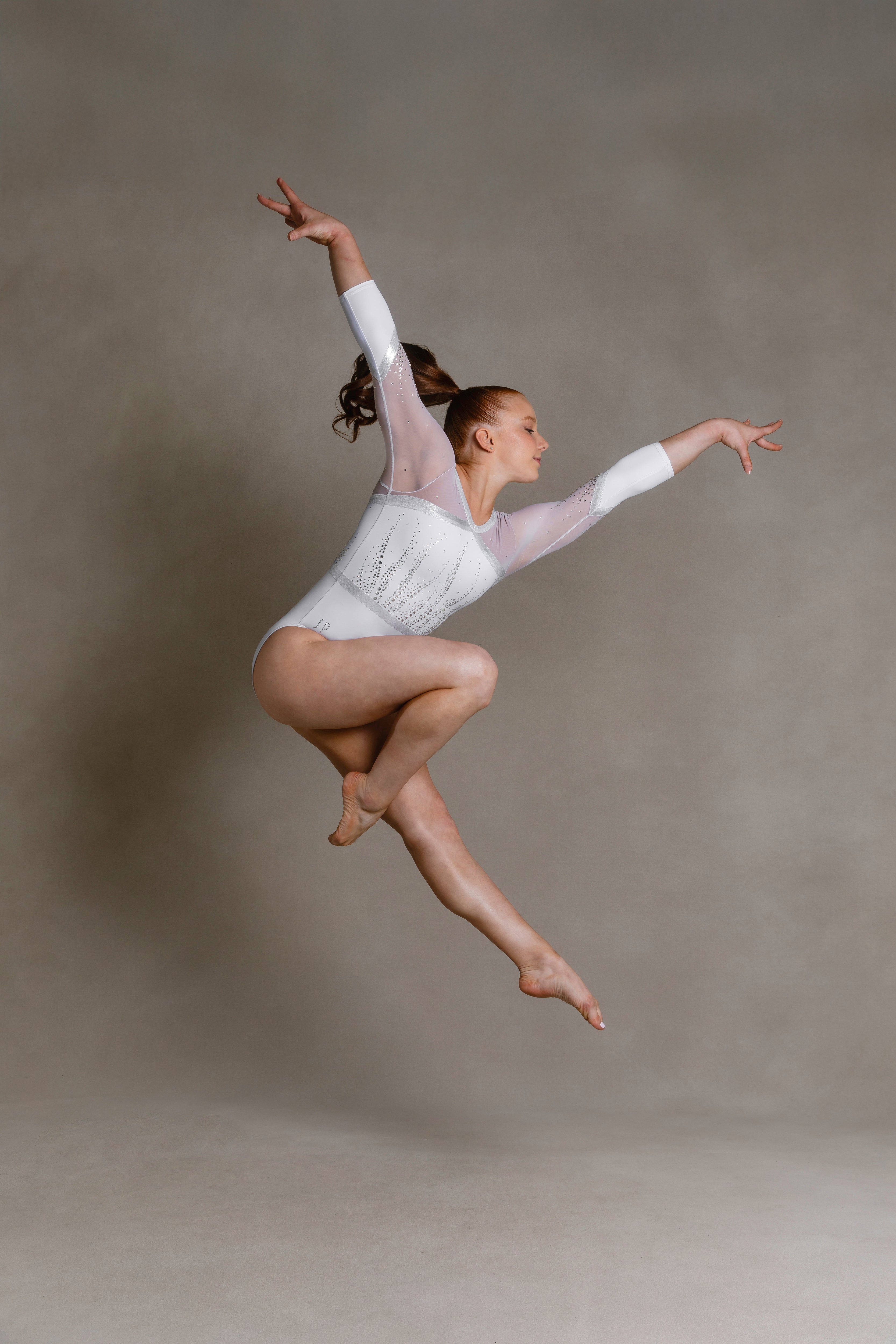 Change the fabrics, colors and crystals of this leotard using StudioSP, our 3D product designer.