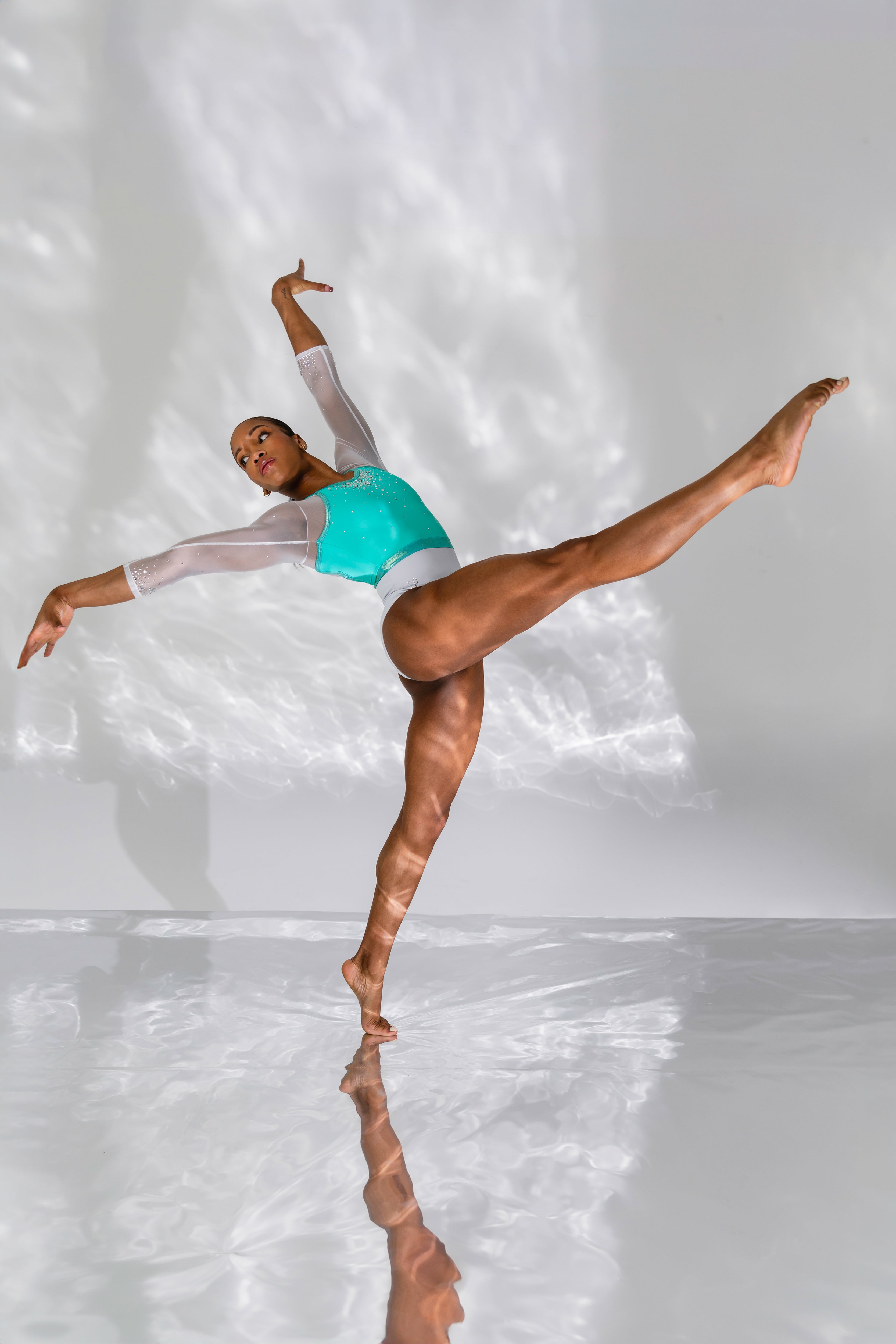 gymnastics – the Kenzi design dares to be different. Styled in a round neck line at the front with a V-shape at the back. The upper bodice and sleeves are sublimated with an ombre ribbon-like look. A waist accenting V-line is created through the body with a textured