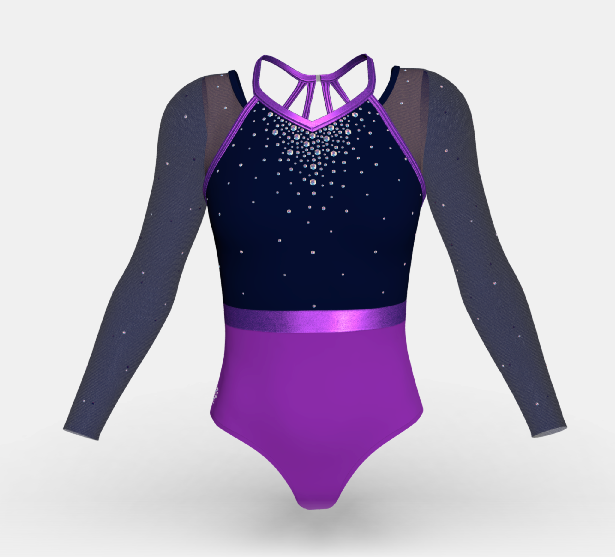 Change the fabrics, colours and crystals of this leotard using StudioSP, our 3D product designer.