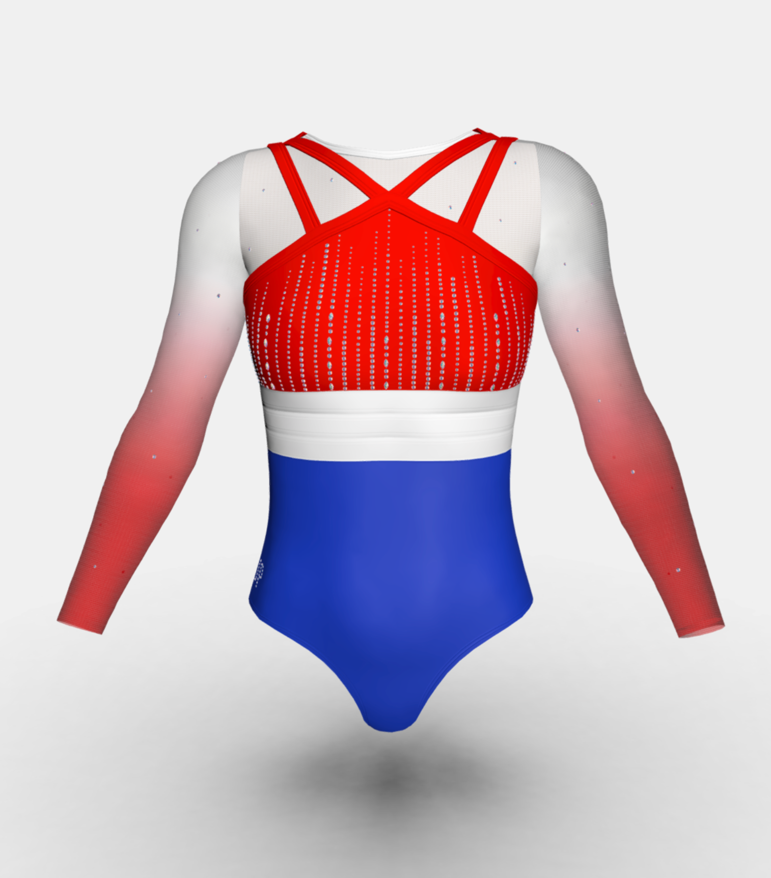 Change the fabrics, colours and crystals of this leotard using StudioSP, our 3D product designer.