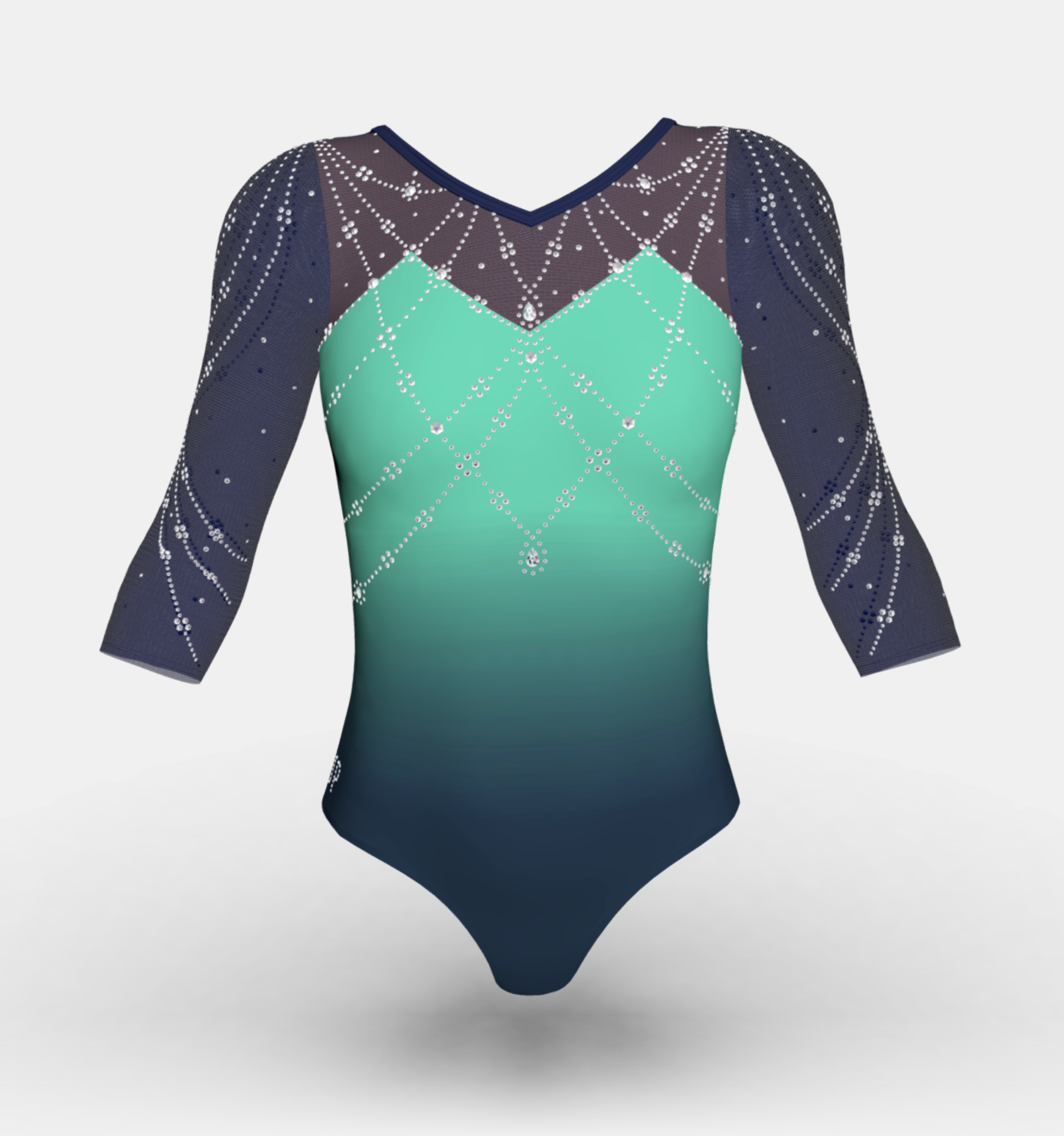 Change the fabrics, colours and crystals of this leotard using StudioSP, our 3D product designer.