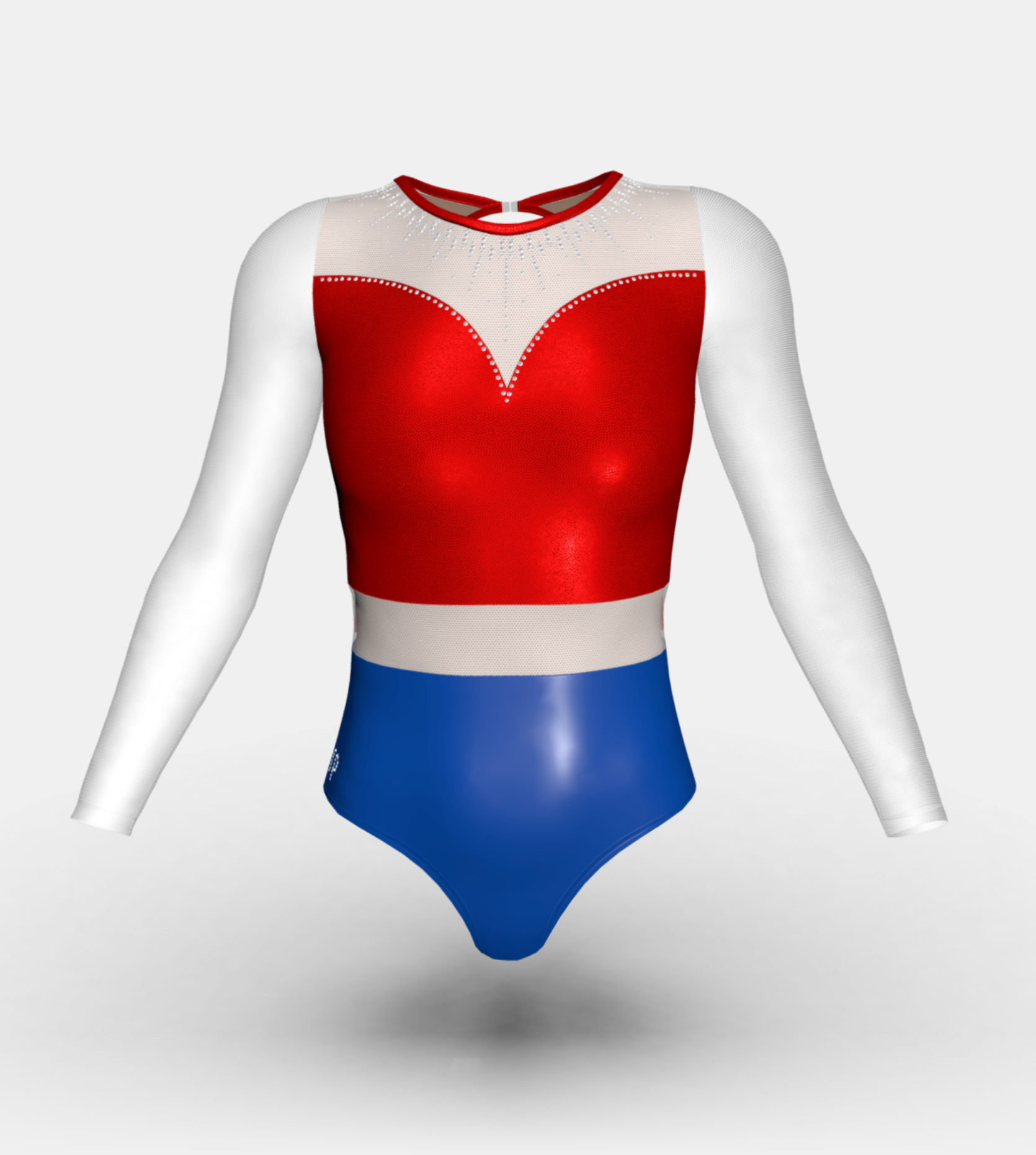 Change the fabrics, colours and crystals of this leotard using StudioSP, our 3D product designer.
