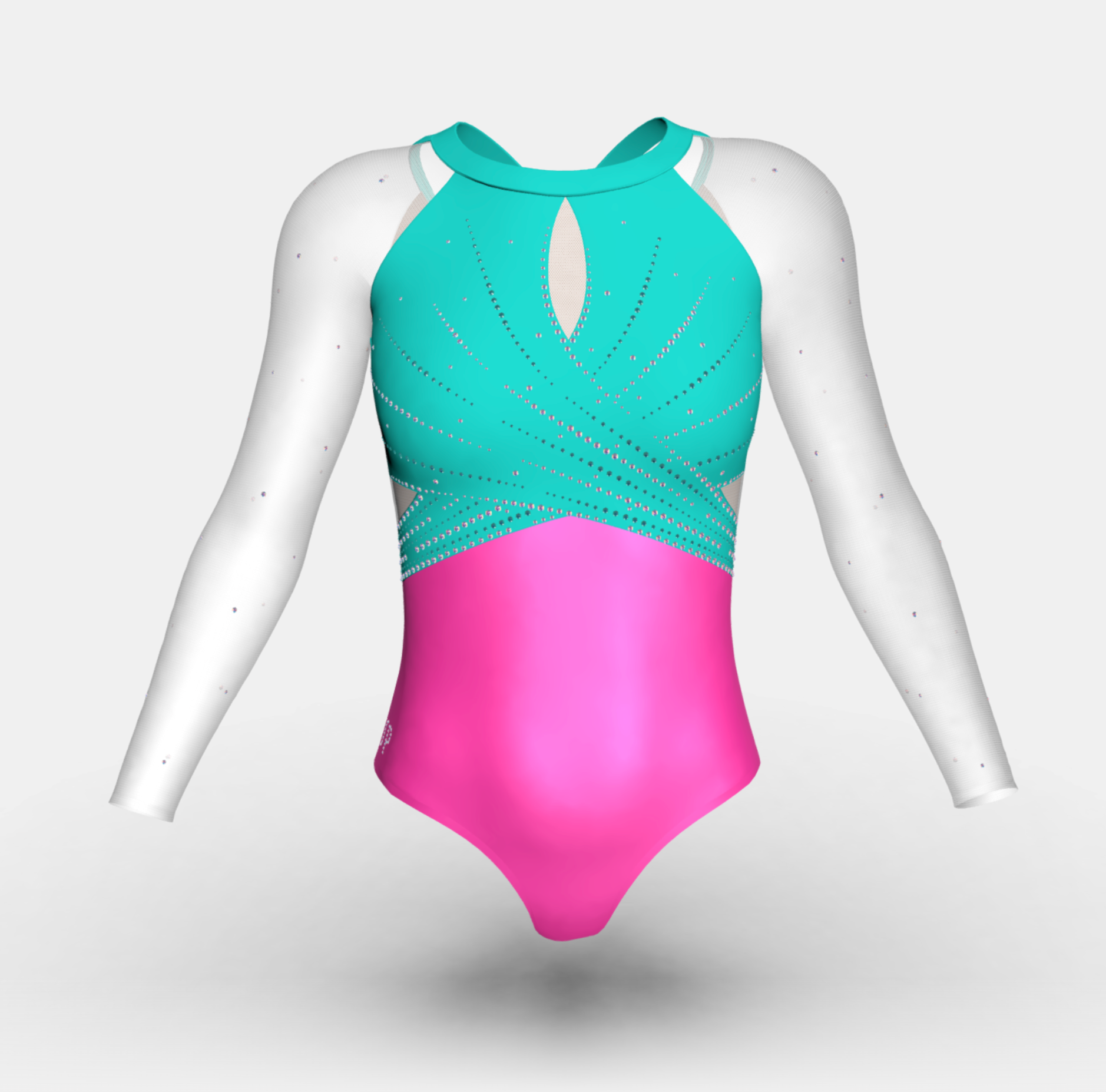Change the fabrics, colours and crystals of this leotard using StudioSP, our 3D product designer.
