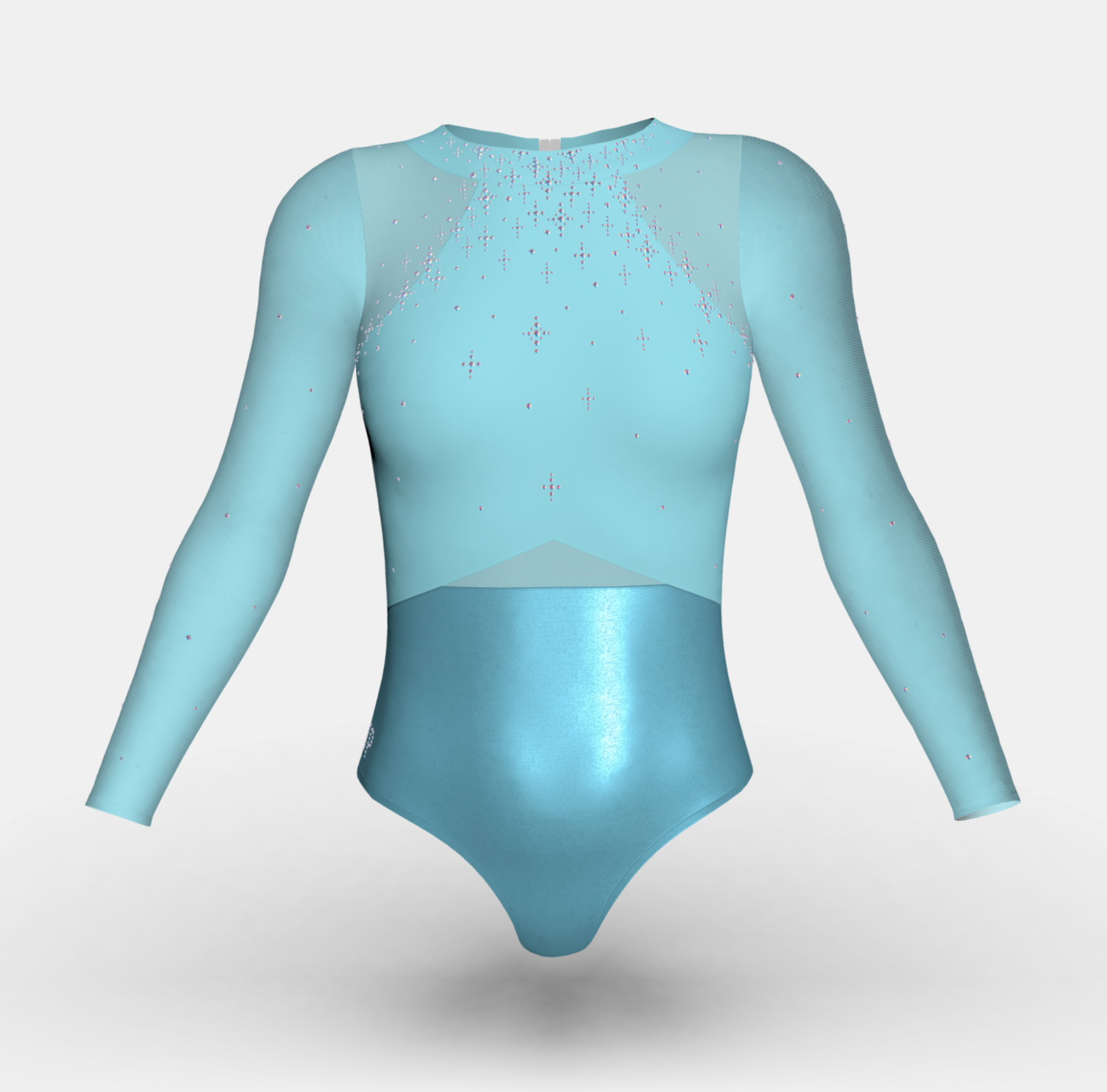Change the fabrics, colours and crystals of this leotard using StudioSP, our 3D product designer.